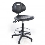 Banco negro alto de laboratorio de poliuretano con respaldo y descansapies