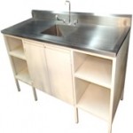 Mesa alta de 180 cm con fregadero central y trampa para yeso esmaltada HEL-HM217 MARCA – Herlis